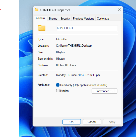 1. In the Properties window, go to the General tab and check the box next to Hidden. Click Apply and then OK.